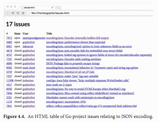 $ go build gopl.io/ch4/issueshtml